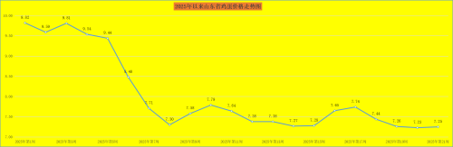 第21周,我省鸡蛋价格如上周分析,回暖上行。本周,我省鸡蛋销售平均价格为7.25元/公斤,同比降低17.71%,环比升高0.28%。就全省监测的26个价格县来看,本周我省最高价在阳信县,为7.90元/公斤;最低价出现在菏泽市郓城县,为6.30元/公斤。当前我省蛋鸡养殖的完全成本约为7.4元/公斤左右,当前蛋价已跌至综合成本线之下,陷入亏损。