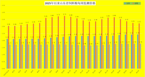 第22周,饲料粮价格震荡,玉米价格向上,创年内新高;豆粕价格继续回落,小麦麸价格上行后企稳。本周,我省玉米均价为2.43元/公斤,同比升高3.40%,环比升高0.41%;豆粕价格继续回落,为3.22元/公斤,同比降低10.80%,环比降低0.92%;小麦麸价格企稳,为1.78元/公斤,同比升高8.54%,环比持平。