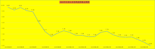 第24周,我省鸡蛋价格承压回落,继续下行,再创年内新低,亦是2021年以来的价格新低。本周,我省鸡蛋销售平均价格为6.50元/公斤,同比降低25.29%,环比降低4.27%。就全省监测的26个价格县来看,本周我省最高价在临沂市兰山区,为7.85元/公斤;最低价出现在菏泽市郓城县,为5.80元/公斤。当前我省蛋鸡养殖的完全成本约为7.0-7.2元/公斤左右,当前蛋价已跌至综合成本线之下,陷入持续亏损区间。