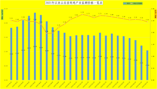 肉雏鸡价格承压回落。本周,我省肉雏鸡均价为2.45元/羽,同比降低6.49%,环比回落3.16%。其中烟台市蓬莱区、招远市达到本周最高价,为3.40元/羽;最低区域价格在莘县,为0.50元/羽(为817雏鸡价格)。因高温天气导致养殖效率下降(如夏季高温高湿,容易引发鸡中暑、球虫病、曲霉菌病等;在多雨的夏季,湿度易达到饱和状态,且容易出现持续高温天气,对肉鸡生长极为不利),养殖场户补栏积极性有所下降,肉雏鸡价格承压小幅走低。后市,种鸡场有挺价情绪,叠加饲料价格下滑,短期肉雏鸡价格有望震荡小幅走高。长期需关注餐饮消费回暖带动及海外禽流感造成引种断档对行业供需调整作用。目前,行业虽有进行法国引种尝试,但法国可供给数量相对有限,利好国内种源替代推进。