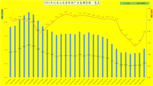 肉雏鸡价格继续大幅反弹。本周,我省肉雏鸡均价为1.89元/羽,同比降低37.00%,环比回升24.34%。其中临沂市兰山区达到本周最高价,为3.25元/羽;最低区域价格在莘县,为0.75元/羽(为817雏鸡价格)。进入7月下旬,依据养殖周期推算,此时补栏可使毛鸡出栏避开三伏天,降低养殖难度。由此,养殖端补栏情绪逐渐回升,企业排苗计划加速,苗价试探拉涨意愿增强。这种补栏节奏的调整成为推动鸡苗价格反弹的重要因素。同时,进入7月后,市场情绪逐渐回暖。7月中旬,鸡源阶段性减量,叠加前期高温导致出栏毛鸡体重偏小,当前大规格产品需求较高,驱动毛鸡价格上涨,部分产品经销商开始试探性抄底补货,带动行情逐步企稳回升;屠宰企业陆续开启加价收鸡操作,对毛鸡市场产生显著提振作用,缓解了对鸡苗市场的冲击压力。叠加饲料价格下滑,短期肉雏鸡价格震荡小幅走高。