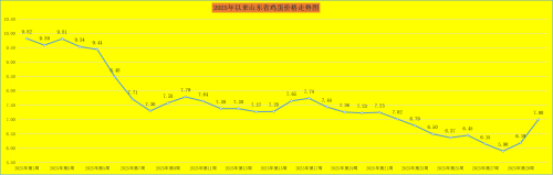 本周肥猪出栏均价走低,生猪养殖效益小幅走低。本周我省猪粮比价为5.94:1,同比降低25.99%,环比降低1.49%。据监测,第30周自繁自养头均利润约60元/头,外购仔猪跌至盈亏平衡。按目前价格及成本推算,未来仔猪育肥模式的生猪养殖头均盈利不足50元。经营较好的规模企业还在降本增效,目前规模养殖企业最新完全成本已降至12元/公斤左右,企业盈利维持较好水平,在上半年实现较好盈利。