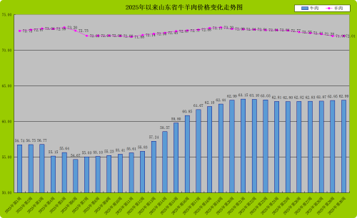 消费向好导致牛羊肉价格小幅回升。本周,我省牛肉均价为62.99元/公斤,同比升高7.38%,环比回升0.06%。牛肉价格震荡回升,主要是受市场阶段性调节影响所致。受产能去化、海外牛肉价格回暖,以及国内进口牛肉调整政策加码影响,2025年牛肉进口预计量减价增,牛肉产业来自低价进口牛肉的压力边际趋弱。据中国海关统计数据显示,截止2025年上半年我国进口牛肉130万吨,同比减少9.5%。