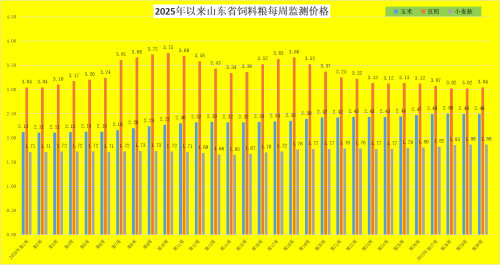 第30周,饲料粮价格震荡,玉米触底企稳,豆粕企稳后回升。本周,我省玉米均价为2.49元/公斤,同比升高2.47%,环比持平;豆粕价格小幅回升,为3.04元/公斤,同比降低6.75%,环比升高0.66%;小麦麸价格企稳,为1.86元/公斤,同比升高3.33%,环比持平。