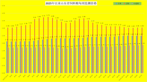 第31周,饲料粮价格震荡,玉米、豆粕价格企稳,小麦麸企稳后回升。本周,我省玉米均价为2.49元/公斤,同比升高2.89%,环比持平;豆粕价格为3.04元/公斤,同比降低5.30%,环比持平;小麦麸价格企稳后回升,为1.88元/公斤,同比升高6.21%,环比升高1.08%。